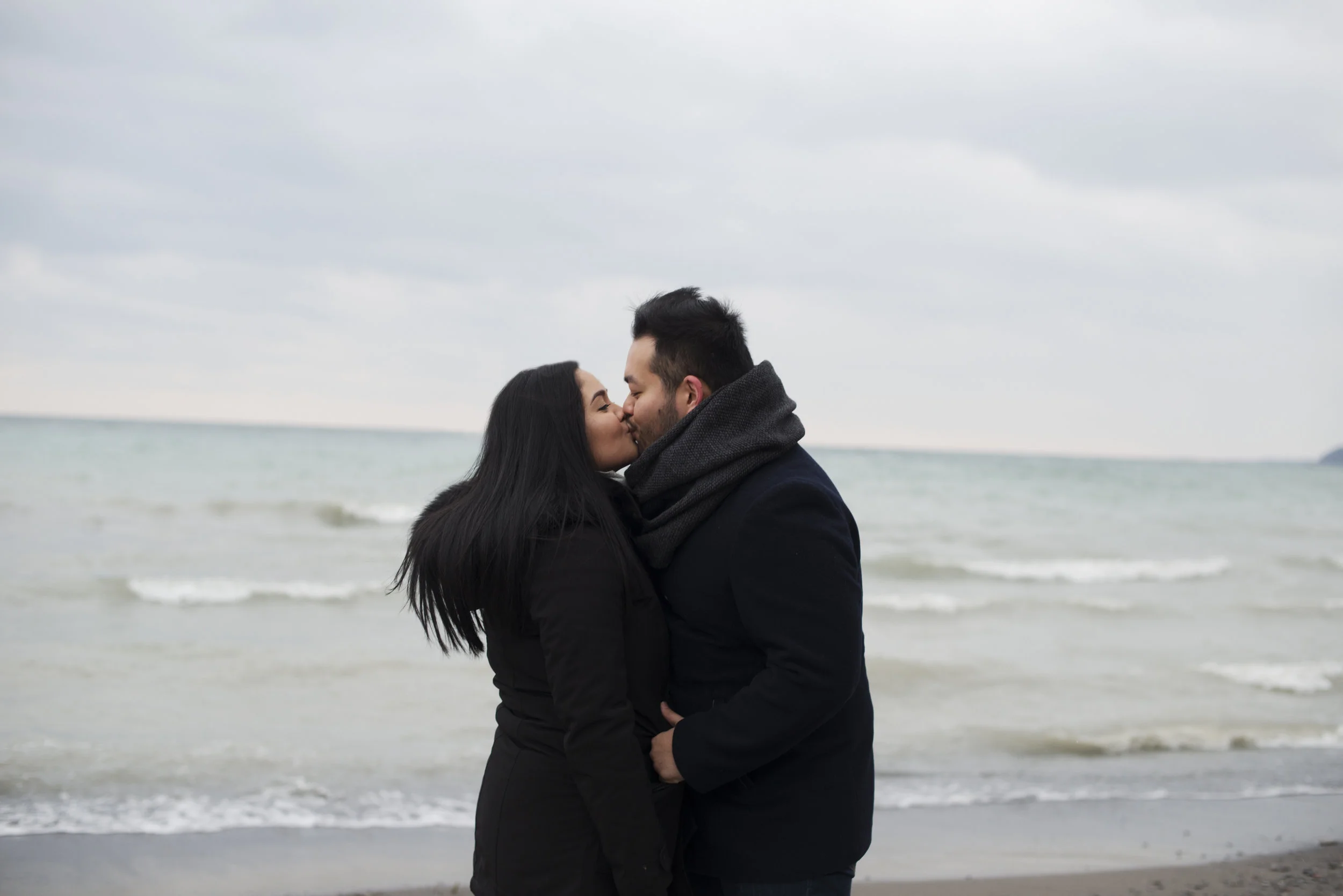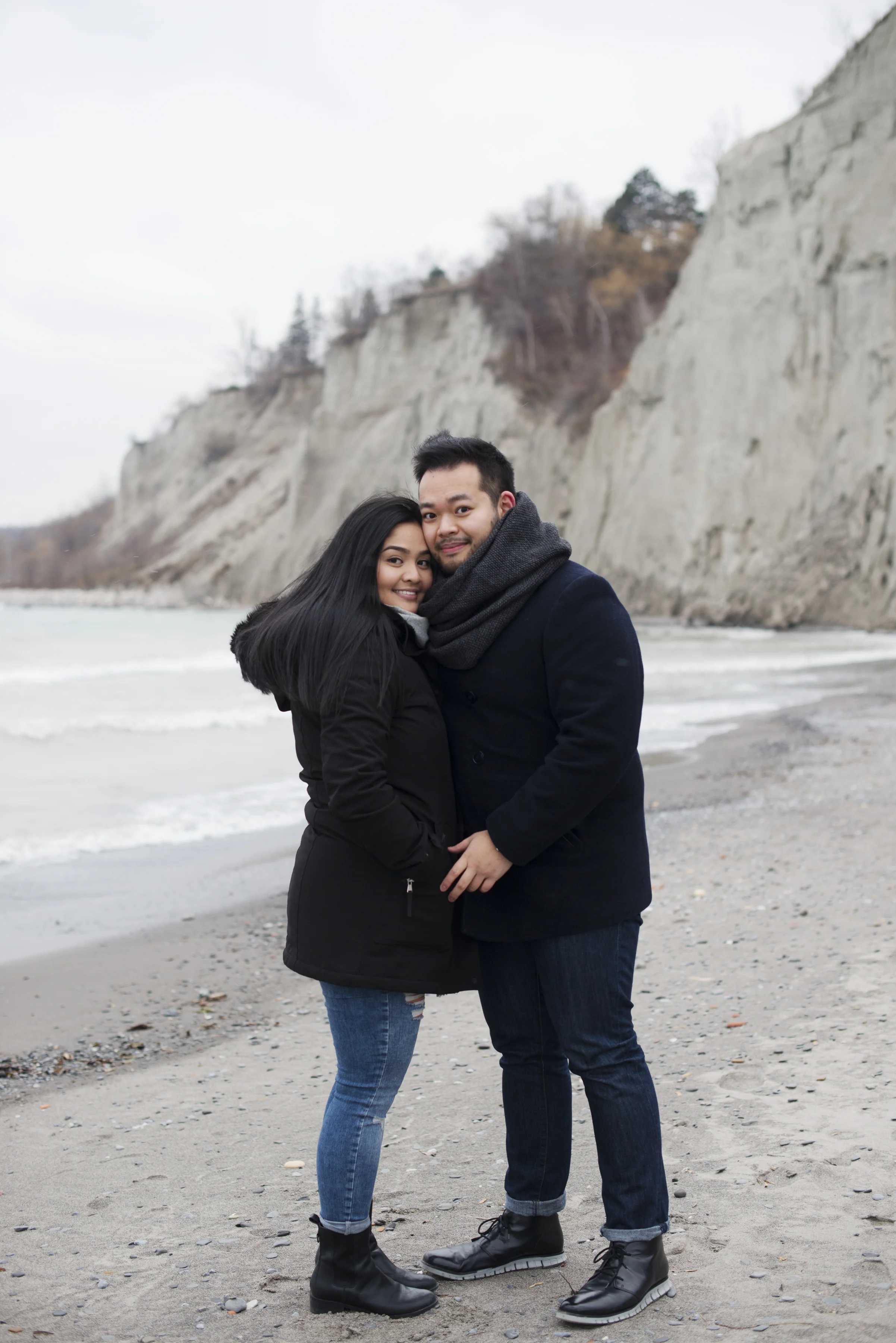 Of course my brilliant idea of having this shoot came on the very last warm weekend of the year so when we went to the Scarborough Bluffs the following Sunday, to say we were freezing is probably an understatement. It was a good 10 degrees colder than last week, and even more so out by the water. We shot for maybe a grand total of 20 minutes before having to head back to our cars for warmth, but it was so worth being able to catch up and photograph these high school friends, turned lovers!